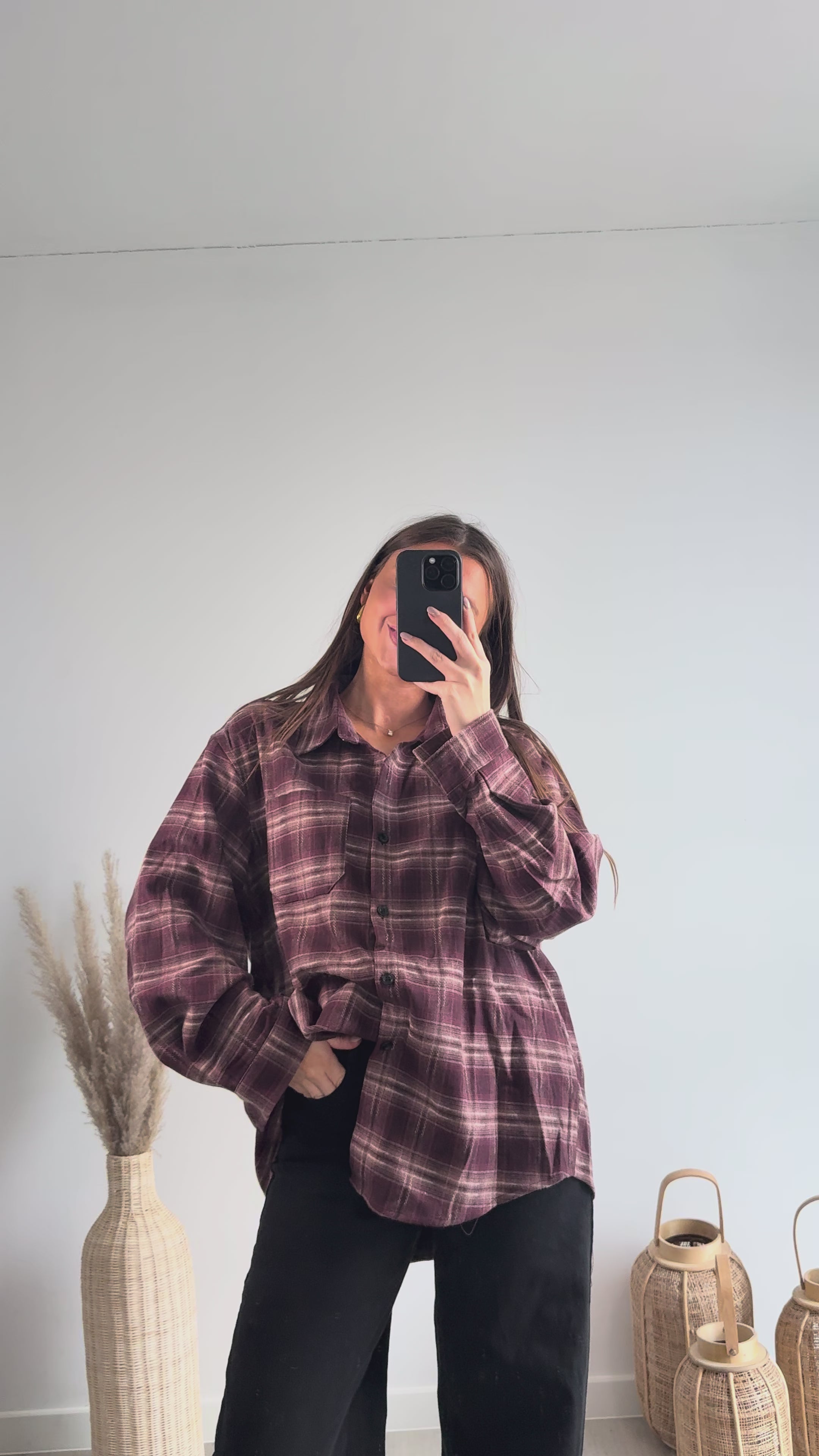 Een zacht hemd in warme bordeaux tint met ruitprint.