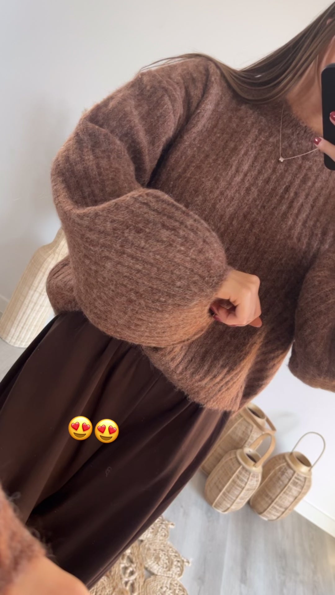 Deze knit trui is heerlijk warm, superzacht en heeft die mooie brede ballonmouwen voor een cozy maar toch stijlvolle look 🤎 Perfect om te combineren met rokjes, jeans of wide legs: dit is echt zo’n trui die je Ă©lke dag wilt aantrekken!Â