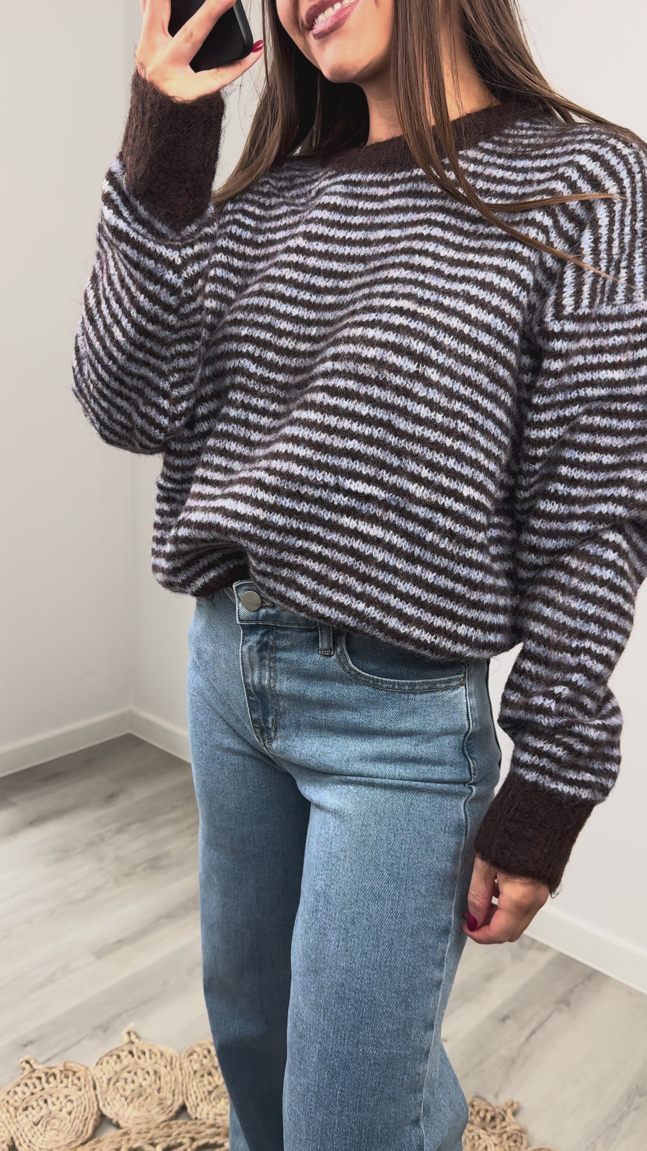 Deze zachte striped knit is zo’n cozy essential die je hele look meteen warm en playful maakt. De relaxed fit valt supermooi en zit heerlijk comfy voor everyday outfits. Perfect om effortless cute én comfy te gaan ❄️.