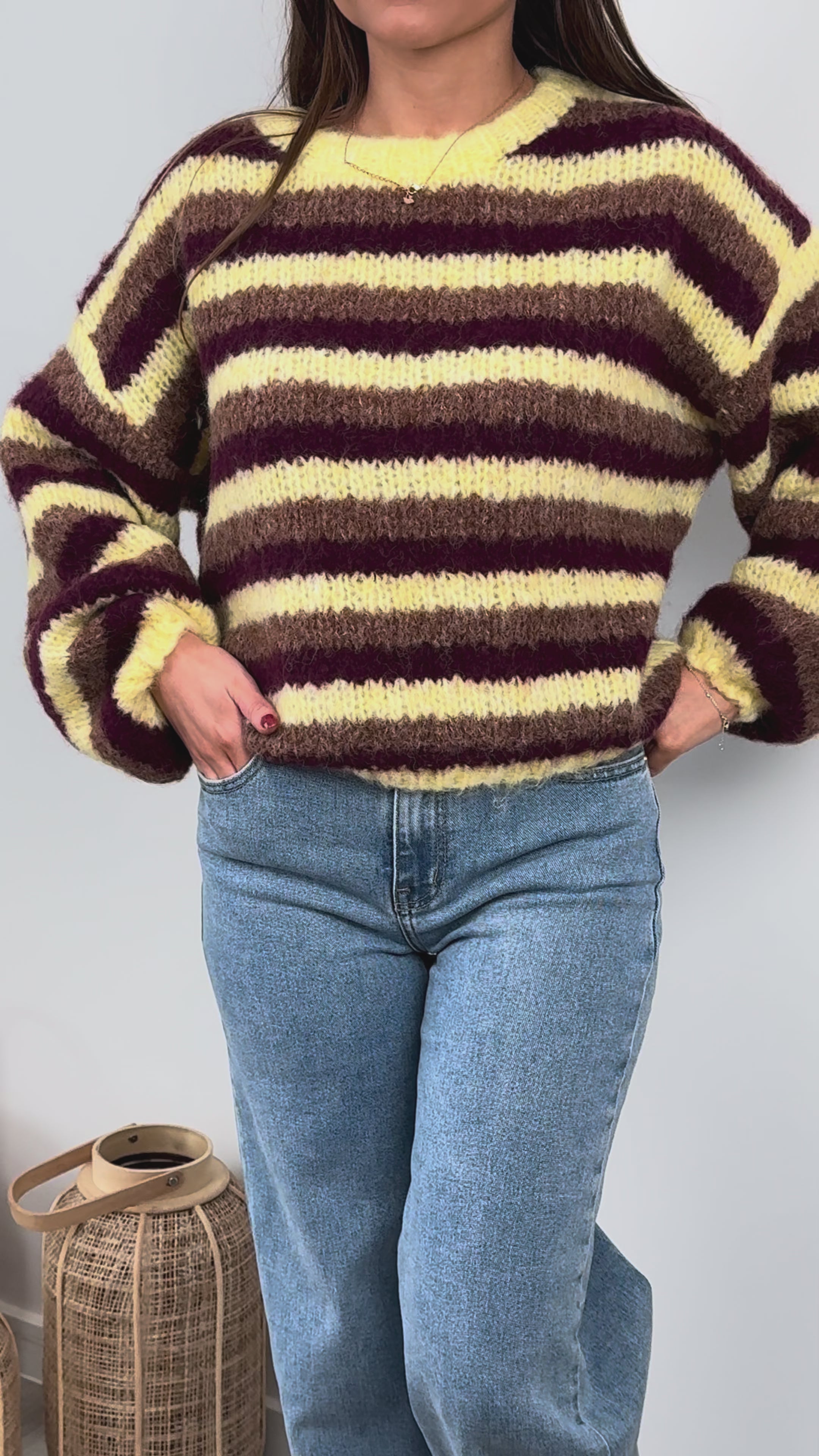 Deze fluffy striped knit is pure cozy vibes: zacht, speels en een echte eyecatcher. De mix van warme tinten maakt ’m perfect voor frisse dagen en geeft elke outfit instant cheer. Ideaal voor comfy-chic looks waar je blij van wordt 💛.