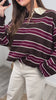 Heerlijk zachte polo-sweater in een warme bordeaux tint met speelse strepen. 🍷